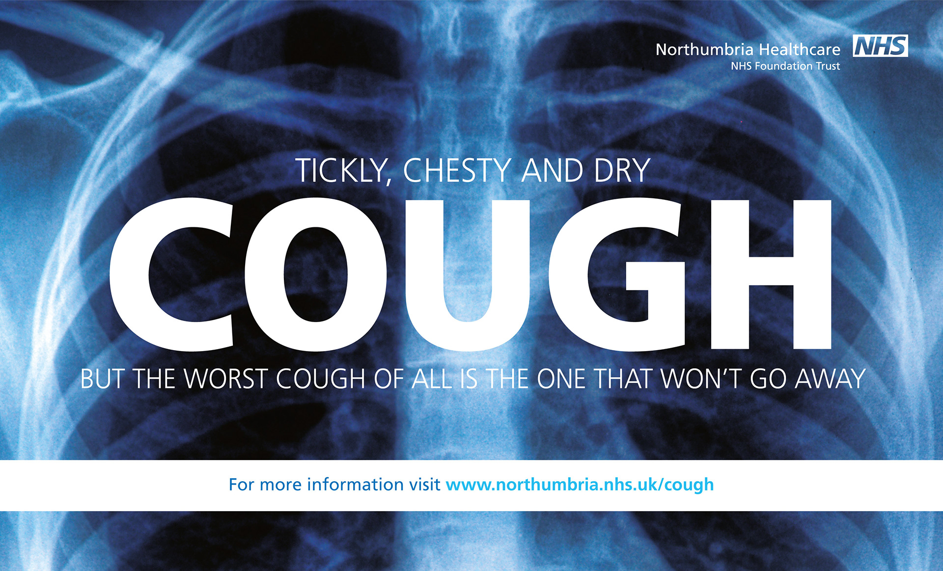 In an effort to identify lung diseases at an early stage, Northumbria Healthcare introduced walk-in x-ray clinics at its hospitals without a GP referral. However, the campaign had clear parameters. Anyone seen needed to have a cough for 3 weeks or more, be over 50 and smoked at some point in their lives. Working with inpatients, messages and concepts were tested and our response was a simple, yet powerful, campaign focusing on the symptom. More than 800 people were seen with 21 conditions detected early as a result.